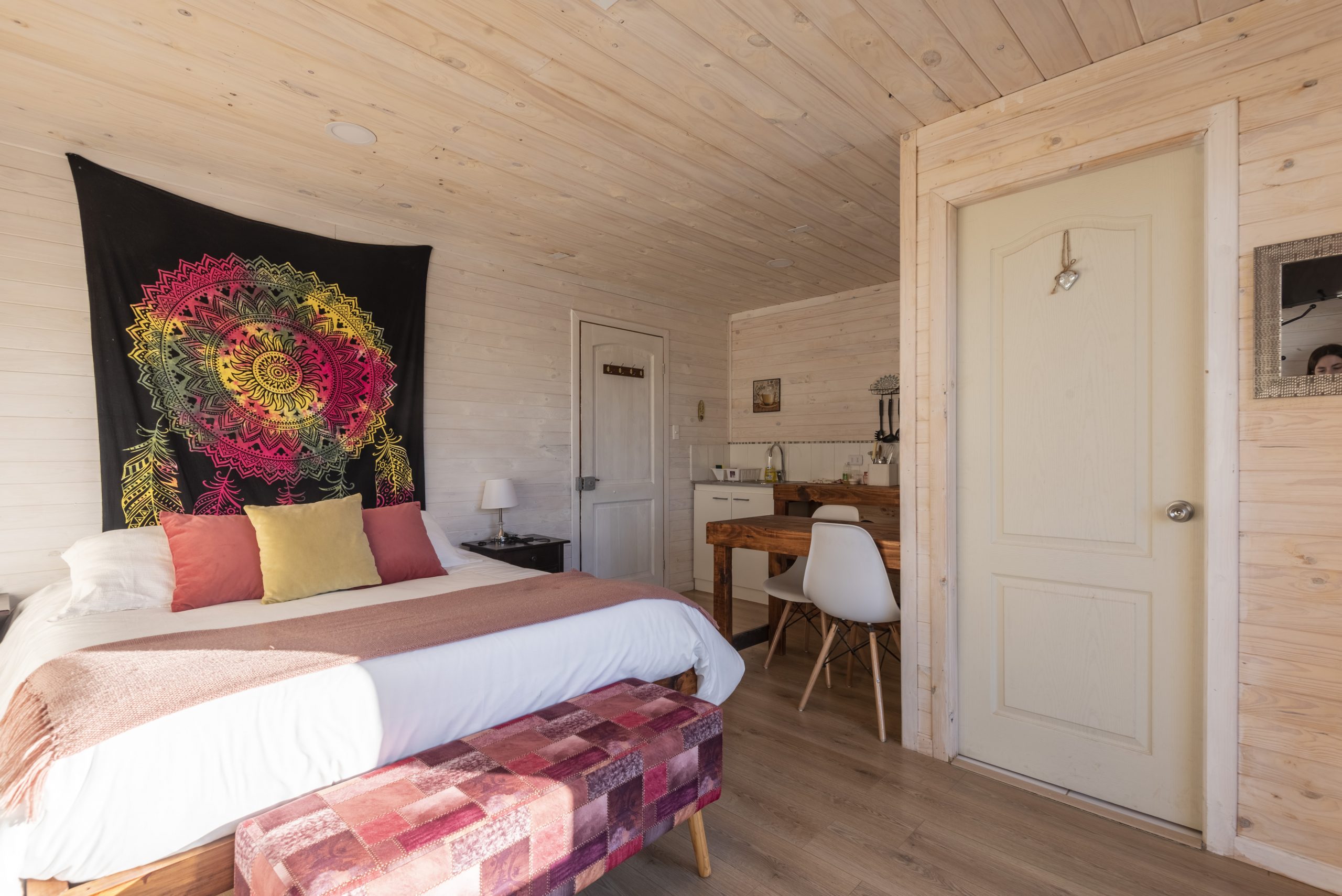 Apartment for two people located on the second floor, counts with a double bed, flatscreen TV, TV cable, private bathroom in suite, Wifi, Kitchenette, kitchen utensils for two people and a minibar. Counts with a roofed balcony and calefaction (bosca or gas heater) where you can enjoy the magical sunsets of Pichilemu.
