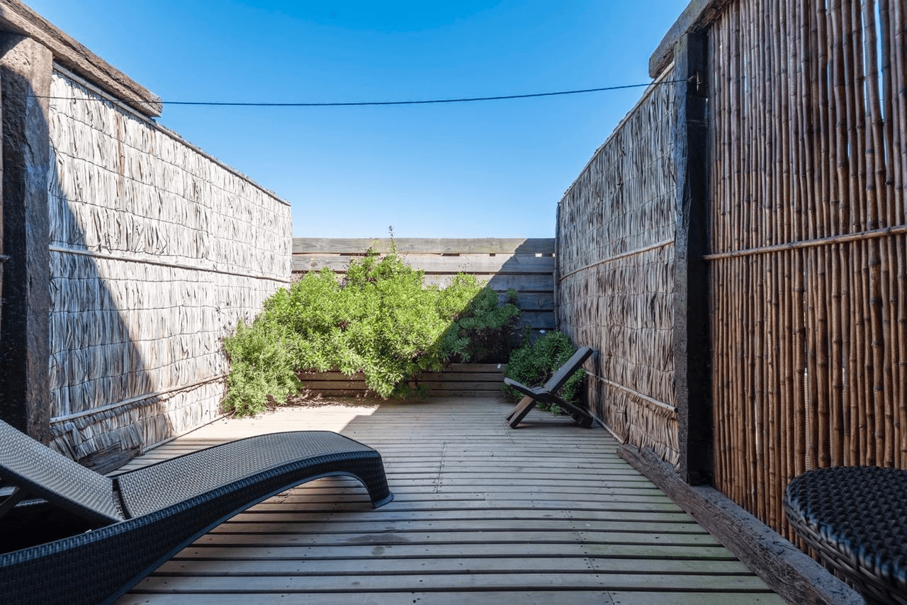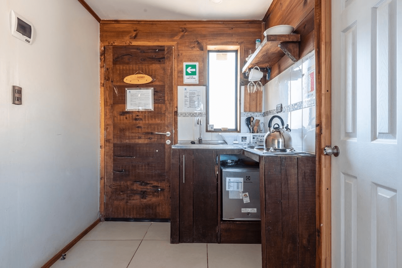 Apartment for two people located on the first floor, counts with a double bed, flatscreen TV, TV cable, private bathroom in suite, Wifi, Kitchenette, kitchen utensils for two people and a minibar. Counts with a large interior terrace, with a garden in the back, where you can catch some sun and hear the waves of the ocean.