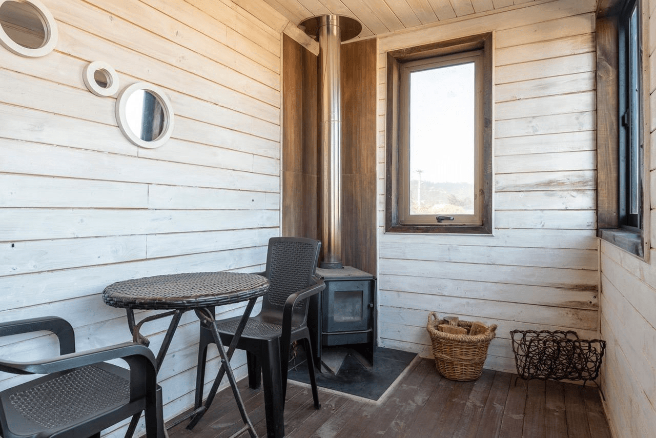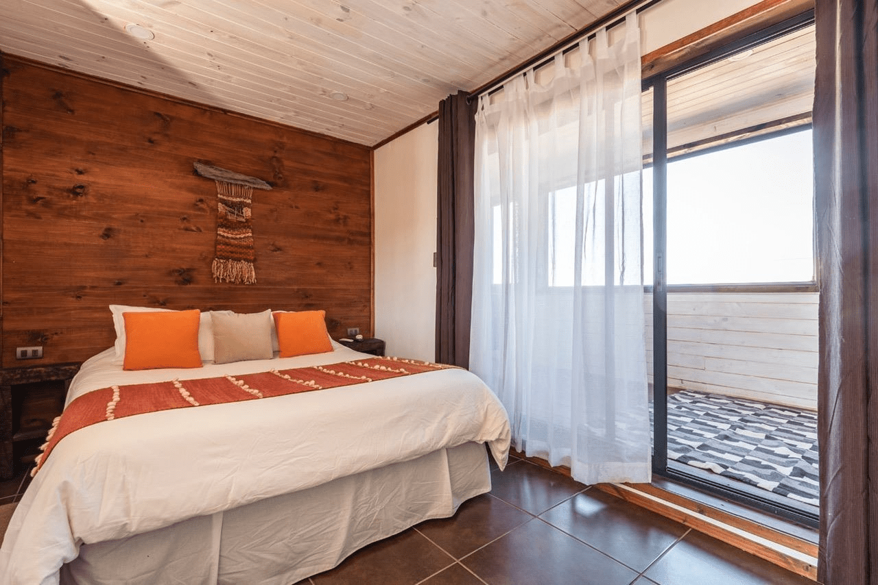 Apartment for two people located on the second floor, counts with a double bed, flatscreen TV, TV cable, private bathroom in suite, Wifi, Kitchenette, kitchen utensils for two people and a minibar. Counts with a roofed balcony and calefaction (bosca or gas heater) where you can enjoy the magical sunsets of Pichilemu.