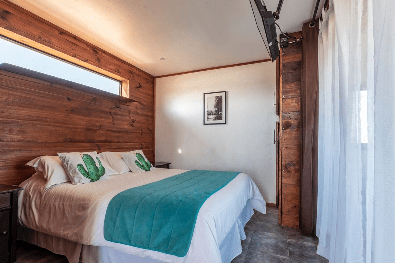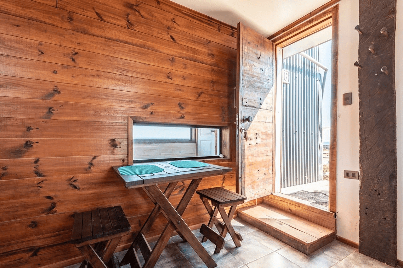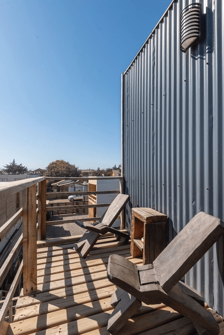 Apartment for two people located on the third floor, counts with a double bed, flatscreen TV, private bathroom in suite, TV cable, Wifi, kitchenette, kitchen utensils for two people and a minibar. Counts with a roofed balcony and calefaction with bosca where you can enjoy the magical sunsets of Pichilemu.